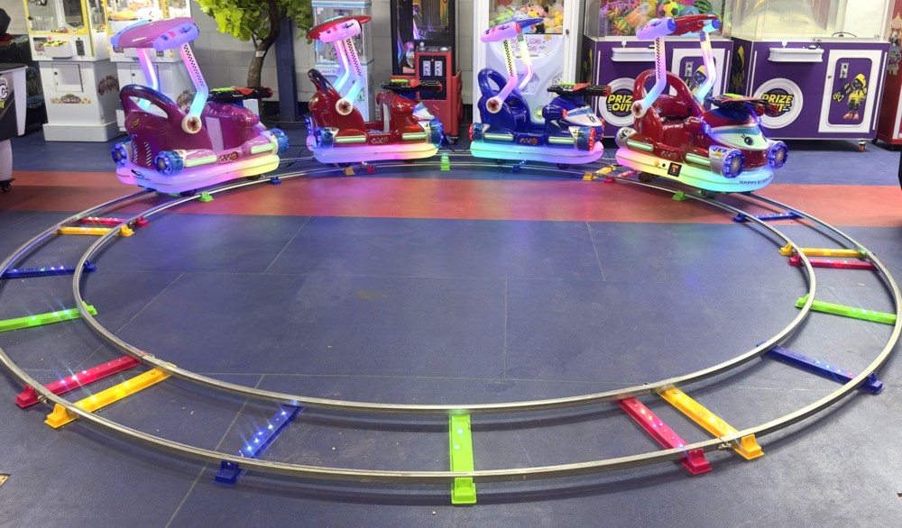 قطار 4 و 5 نفره تفنگ دار، هم زمان « سواری نرم » و « رقابت نشانه گیری » را جلوی چشم خانواده ها میگذارد؛ ریل های LED از ده ثانیه ی اول اثر « هیجان » می سازند، تفنگه ای مادون قرمزِ بیخطر به هدف های نورانی شلیک میکنند و امتیاز ها لحظه ای بالا می رود — همین ترکیب باعث می شود کودک برای رکورد بعدی دوباره برگردد و صفِ خرید حفظ شود.